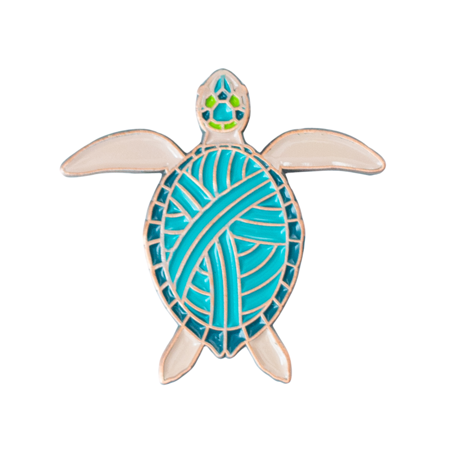 This enamel pin features a sea turtle with a yarn ball shell! Add it to your bag or jacket for some fun fiber flair!